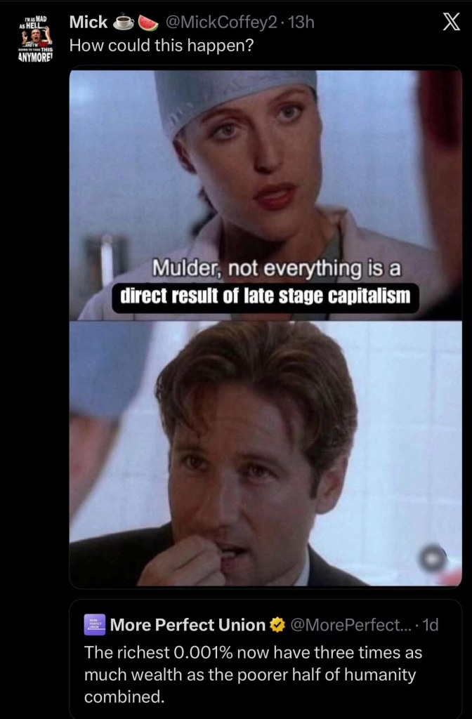 I don’t disagree, I understand why this idea is being pushed. If the Left can persuade the Right who the real villains are and who to aim their anger at, (billionaires rather than immigrants and refugees) then we would be fighting a common enemy together.